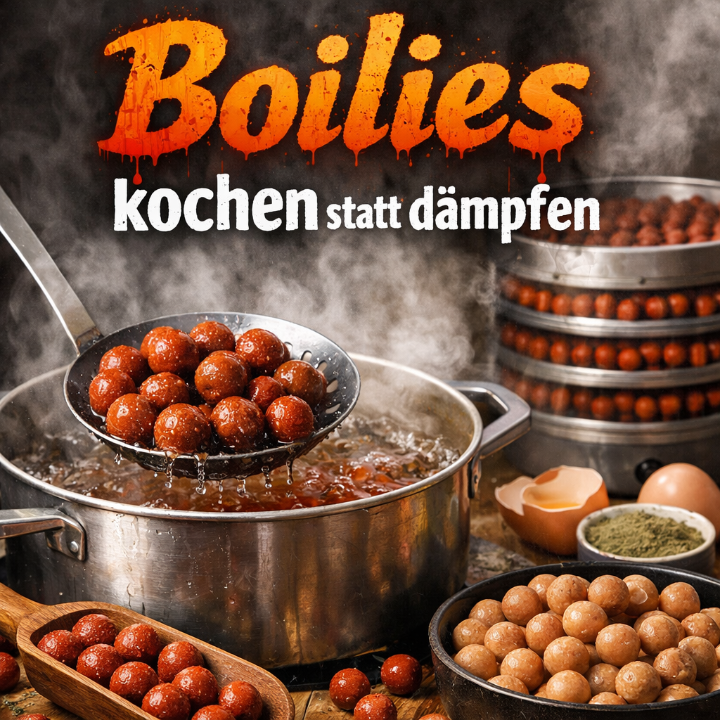 Da die Boilies direkt in kochendes Wasser fallen, schließen sich ihre Poren sofort. Dadurch bleiben Farbe und Attraktoren bestmöglich im Köder gebunden.
